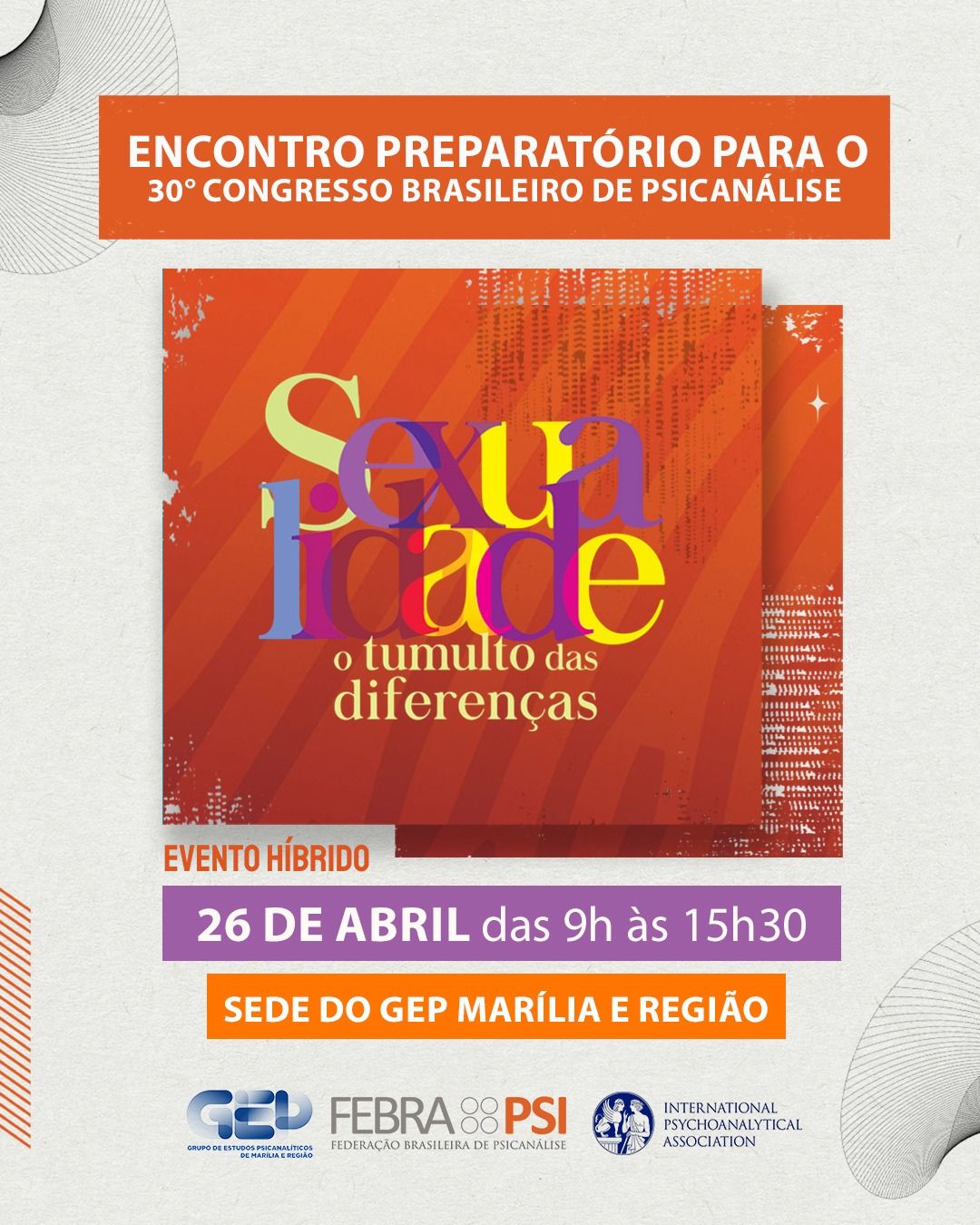 📌Confira os melhores momentos do Encontro Preparatório realizado pelo GEP Marília e região, dando uma ideia do quão maravilhoso será o 30º Congresso Brasileiro de Psicanálise que acontecerá em Gramado de 22 a 25 de outubro.