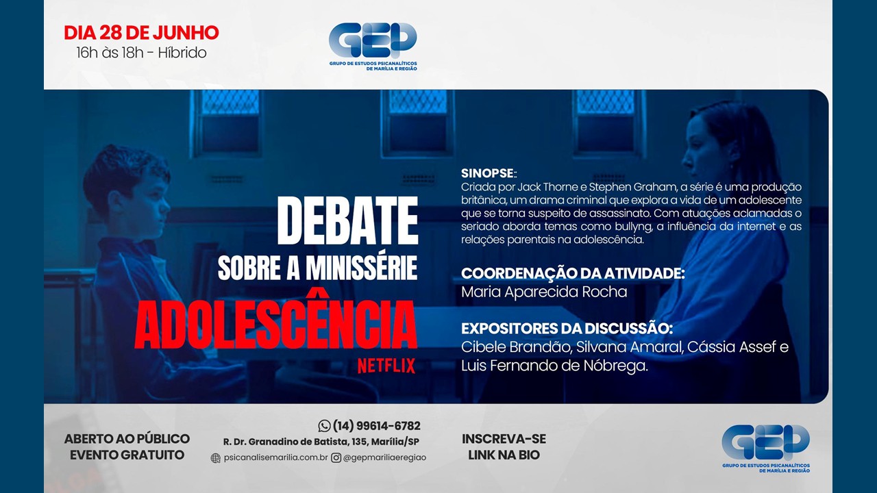 A atividade integra a proposta do GEP de oferecer espaços de diálogo entre a psicanálise e os fenômenos socioculturais atuais, reafirmando seu compromisso com a formação, a clínica e a escuta da comunidade.