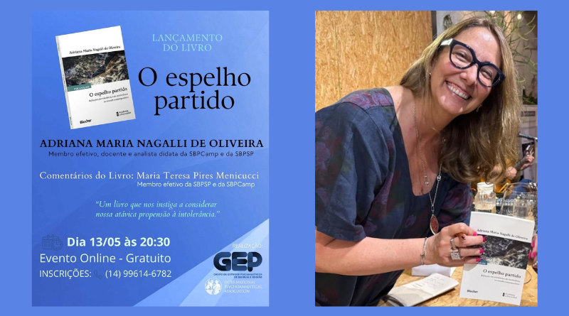 O GEP Marília e Região convida para o lançamento do livro “O espelho partido”, de Adriana Maria Nagalli de Oliveira. Uma obra que nos provoca a pensar sobre as tensões entre tolerância e intolerância no mundo contemporâneo.